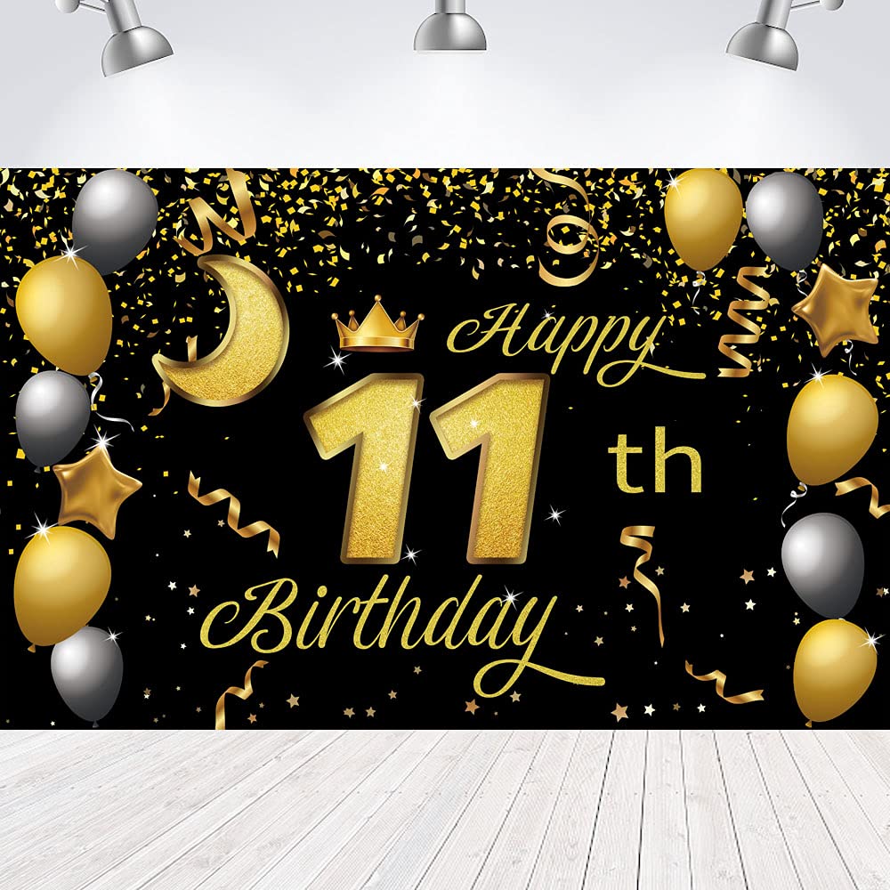 Amazon Com Sweet Happy 11th Birthday Backdrop Banner Poster 11 Birthday Party Decorations 11th Birthday Party Supplies 11th Photo Background For Girls Boys Women Men Black Gold 72 8 X 43 3 Inch Home Kitchen